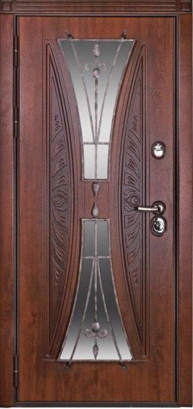 Входные двери в Пушкине с применением декора витражом изготавливаются из стального профиля, придающего прочность конструкции, а сама витражная вставка обладает высокой взломостойкостью, поскольку для витражных композиций используется специальное стекло, обработанное особым образом. Усилить надежность витражного элемента можно с помощью использования декоративных кованных решеток.