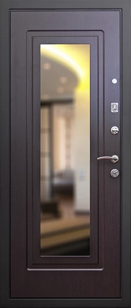 Прочная металлическая Дверь с зеркалом DZ384 по цене от 30 000 руб. под заказ в любой комплектации. Вы можете выбрать материал, замки, цилиндры и многое другое. Производим сами! Быстрая доставка и установка в Хасавюрте.