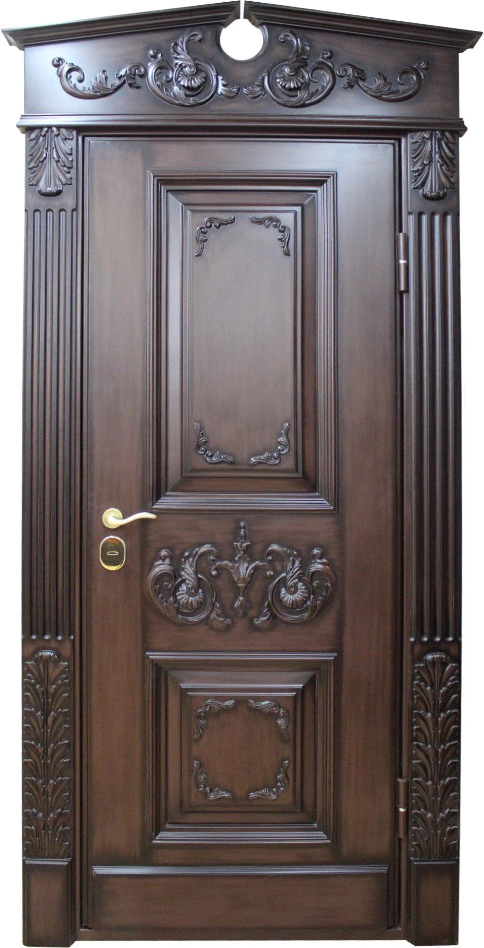 В основе конструкции элитных дверей в Пушкине - стальной лист толщиной не менее 2.0 мм, дверное полотно укреплено ребрами жёсткости (могут быть горизонтальными, вертикальными, комбинированными). При желании можно сделать дверь из стали 3.0 и даже 4.0 мм. Но тут есть ряд особенностей. Полотно и каркас такой двери невозможно сделать из гнутого профиля, конструкция только сварная. Ну и надо помнить, что двери из толстого металла очень тяжёлые, а следовательно, травмоопасные.